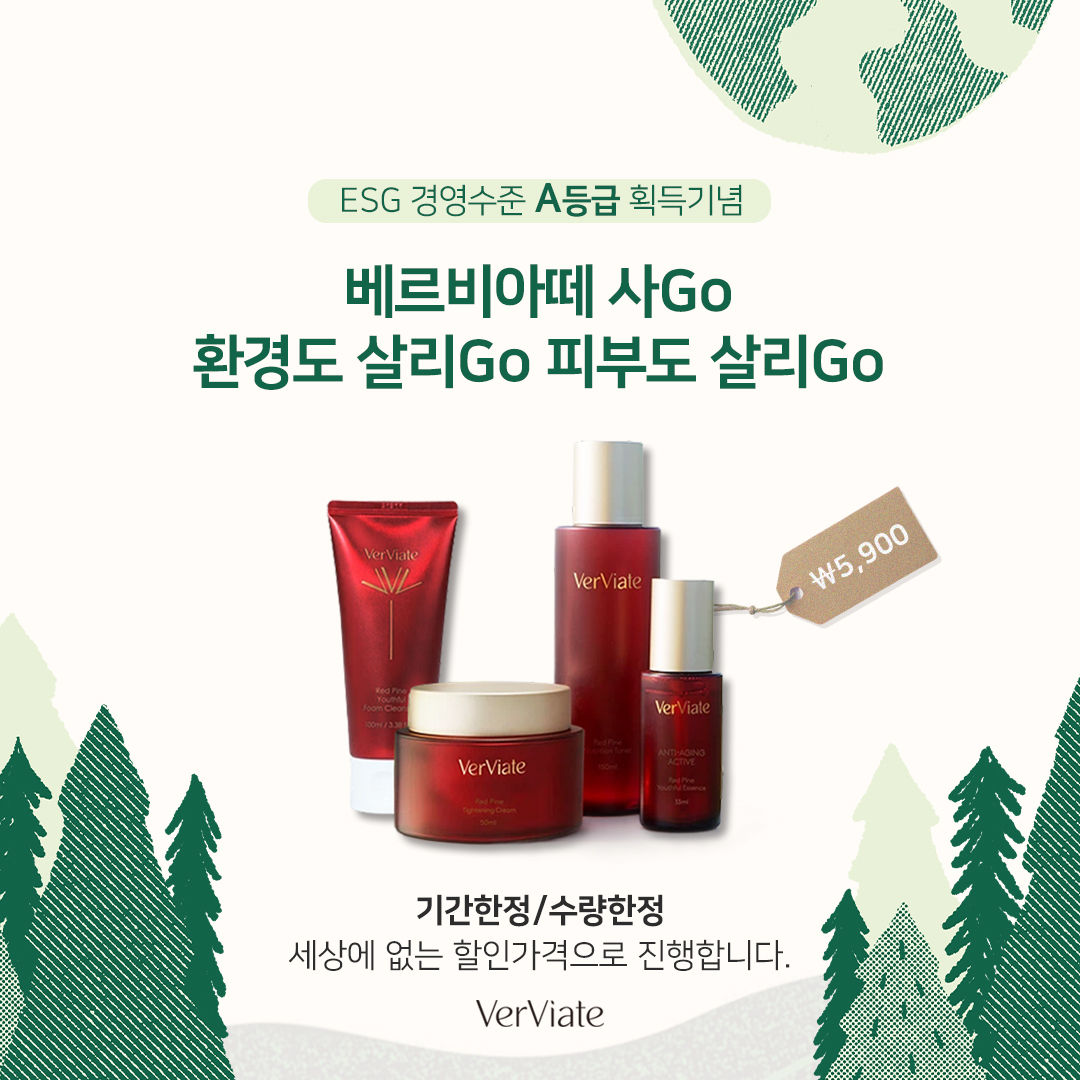 세계 지구의 날을 맞아 하이소주식회사가 ESG경영수준 A 등급을 획득한 성과를 축하하기 위해 세상에 없는 가격으로 베르비아떼 제품의 가격을 5,900원으로 판매합니다. 베르비아떼 사고, 환경도 살리고, 내 피부도 살리고~