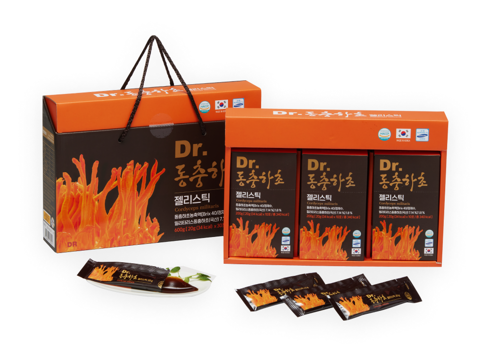 항암작용, 면역력 강화, 기혈 순환에 좋은 천연 항생물질인 코디세핀을 함유하고 있는 동충하초와 선별된 한방 원료들이 첨가된 건강간식