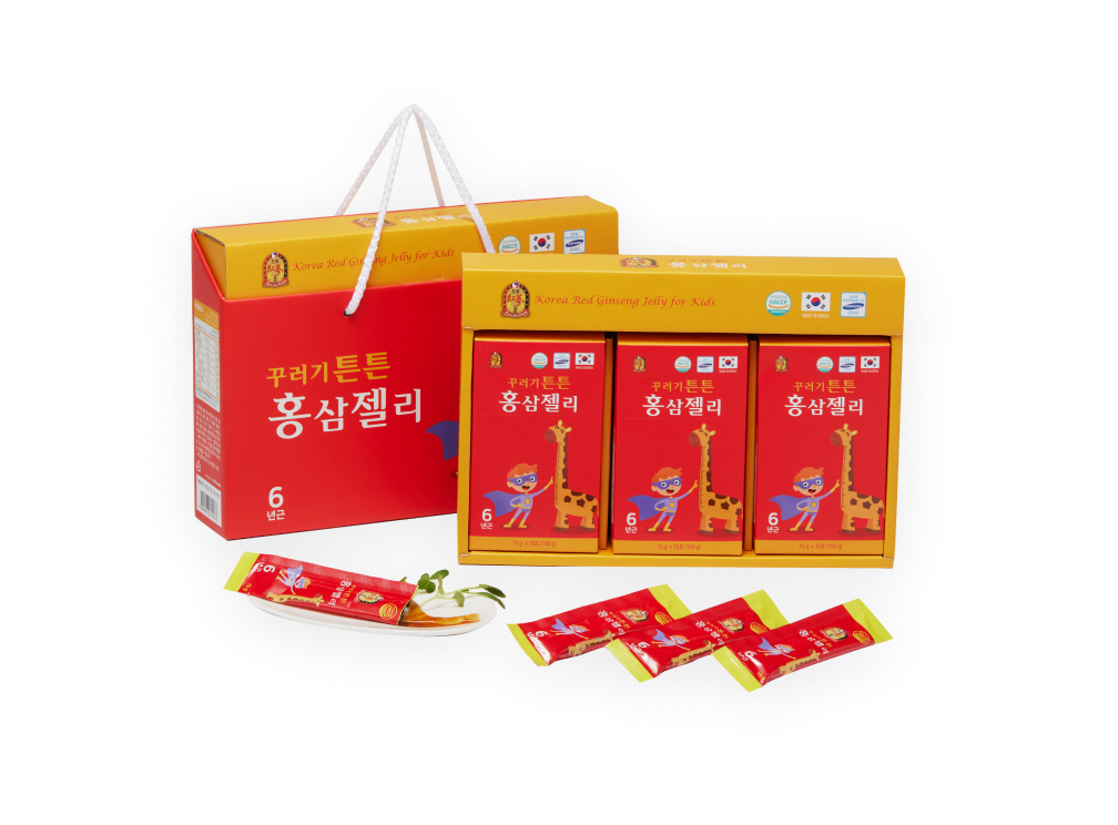 국내산 6년근 홍삼과 비타민, 미네랄이 들어가 아이들의 면역력을 키워주는 사과맛 어린이용 건강간식