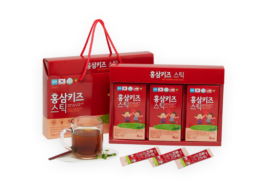 It is a fresh, fruit-flavored liquid product that contains domestically produced 6-year-old red ginseng, vitamins and minerals to boost children's immunity and improve memory and energy.